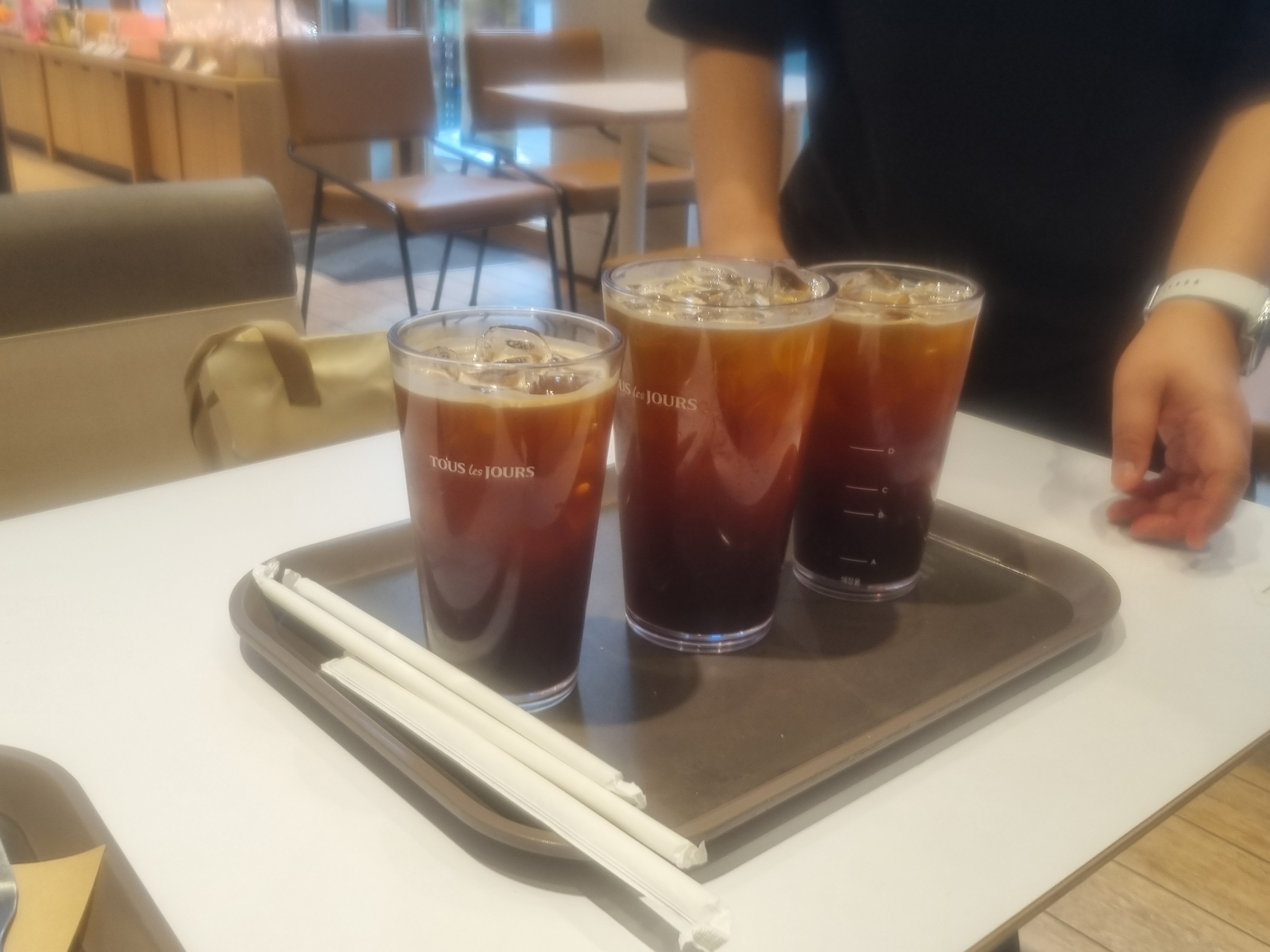후배와 뚜레쥬르에서 아이스아메리카노 와 애플파이 주문을 했습니다